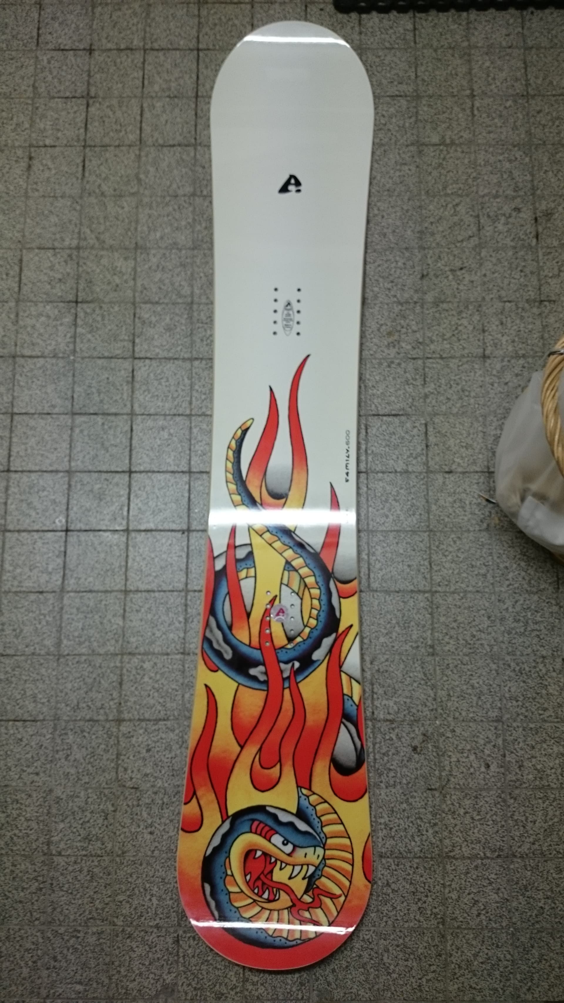 Il s’agit d’une planche qui a été conçu sous la marque A. Snowboard et appelée la A. Family. Elle a ensuite été vendue sous le nom Apo Yannick Amevet.