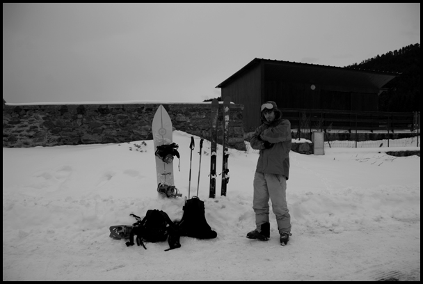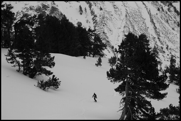 Guillaume et moi sommes redescendus jusqu’au village d’Espousouilles, et Les autres sont remontés dans la foret pour retomber sur la station afin de venir nous récupérer en voiture, car les peaux de guillaume ne collant plus, la montée aurais été un enfer !