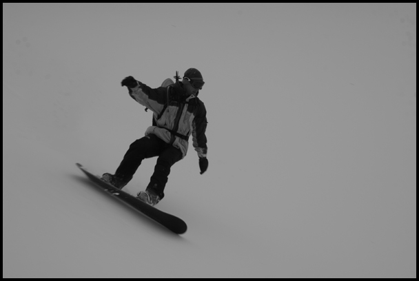 Guillaume, seul skieur au milieu des snowboards !