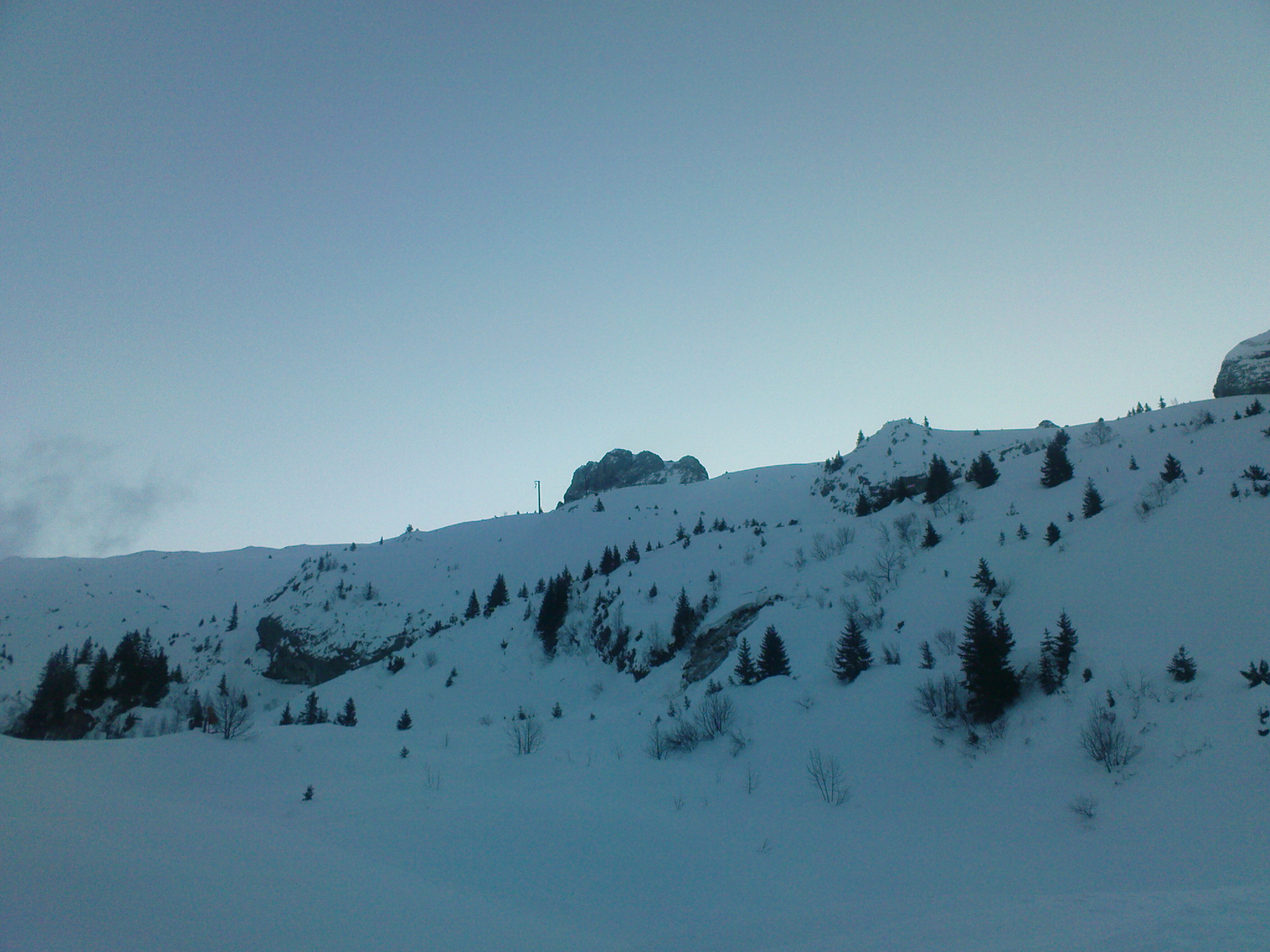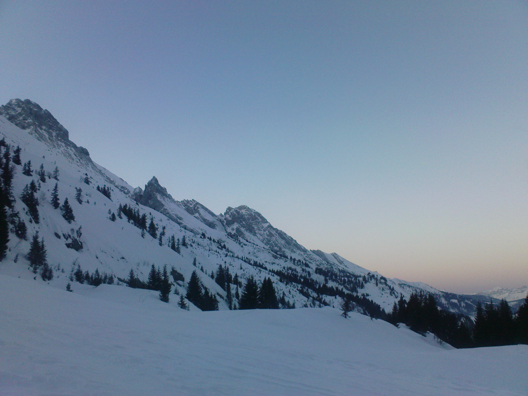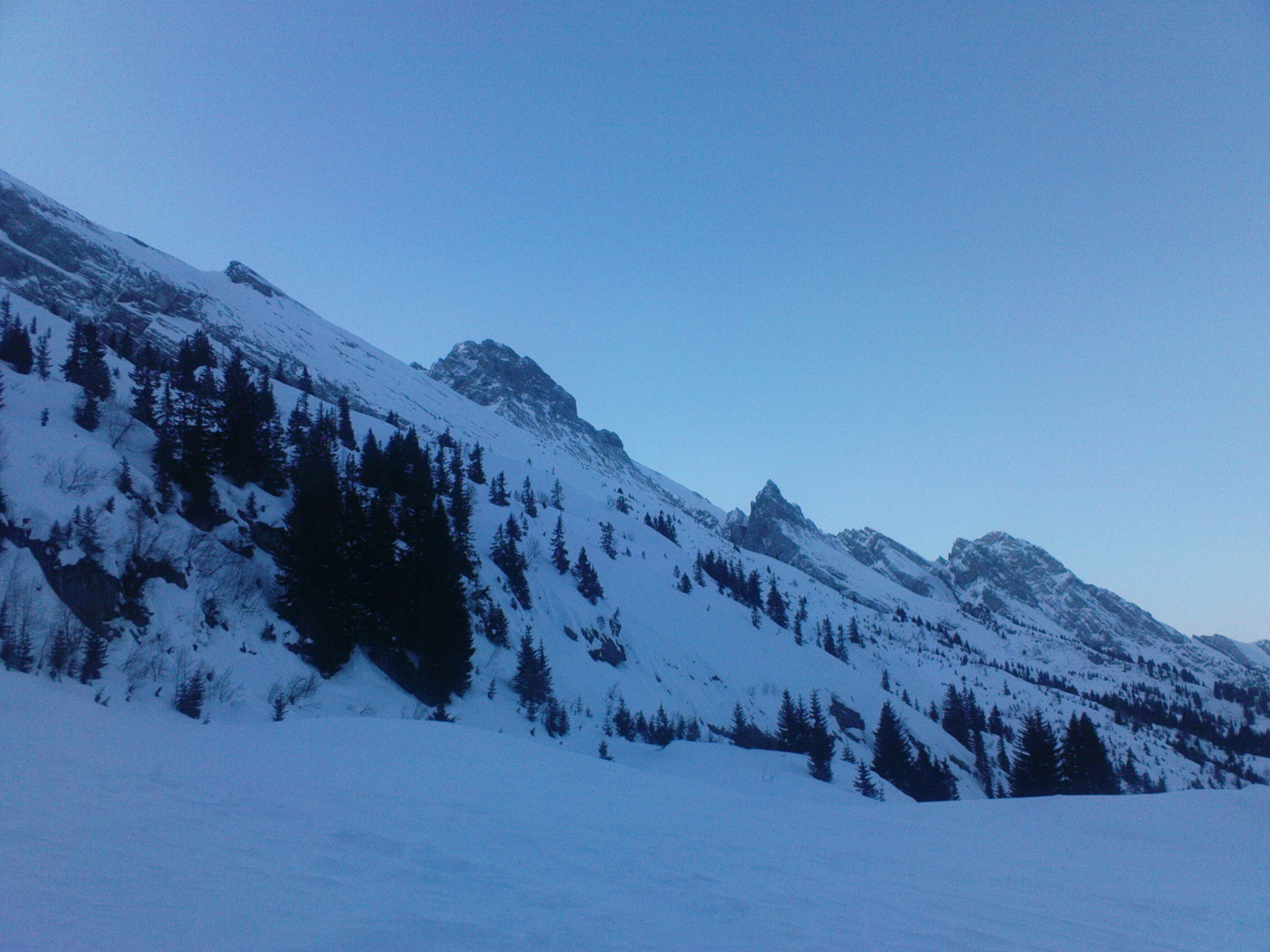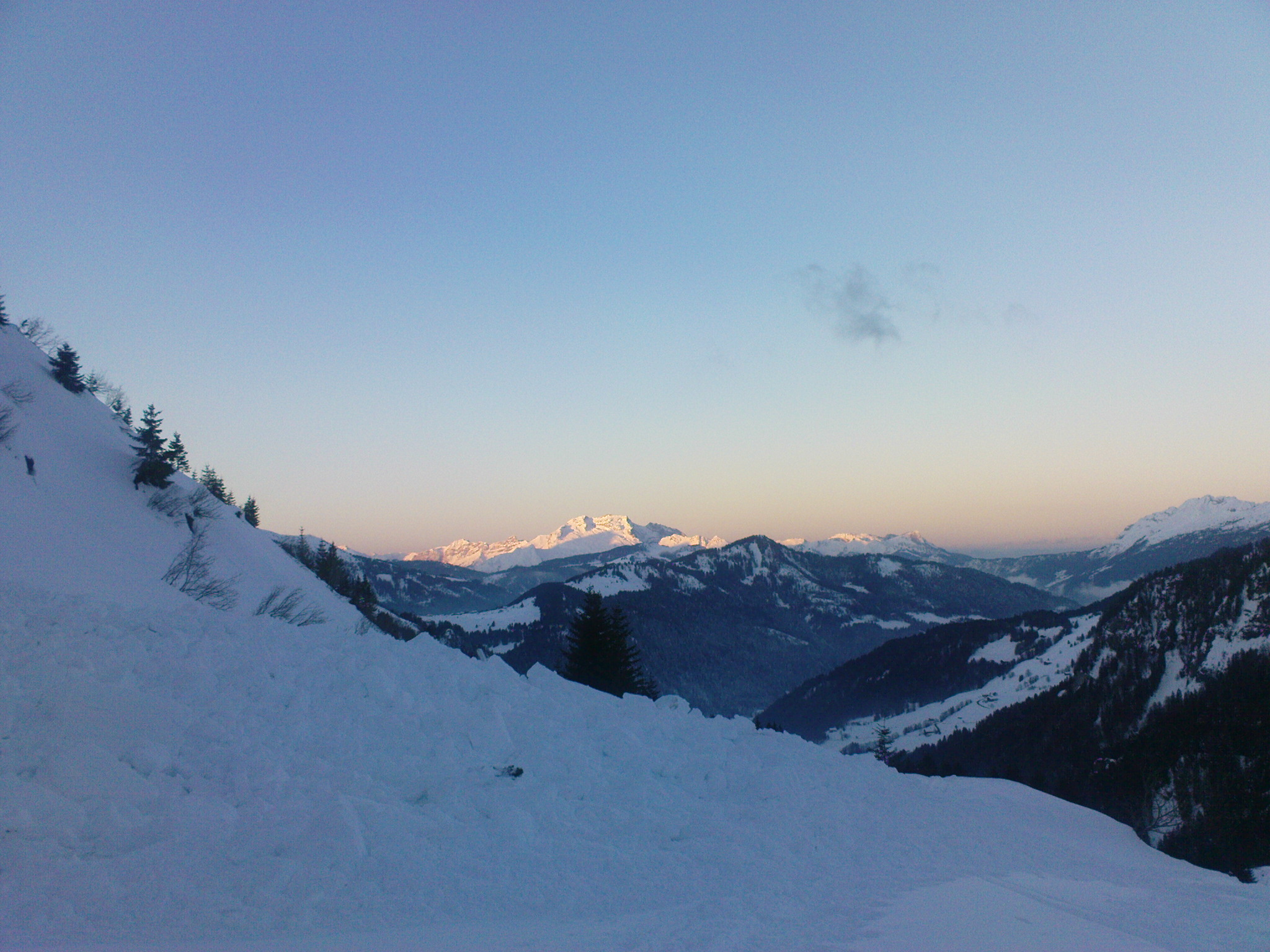 Bon bah comme l’a dit Adren, on reste sur un échec, grrrr deux randos et déjà deux objectifs non atteints, enfin là c’est pour cause de mauvais feeling avec la neige, puis cause de Manu (le boulet) qui oublie son ARVA. Bon ça reste une très belle montée avec des vues